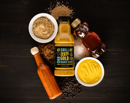 Zesty Gold BBQ Sauce is a must-have sauce. With a deep golden color and tangy mustard flavor, this Carolina mustard-style sauce is delicious drizzled, dunked, or dipped in pork and chicken.