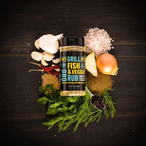 Dill, red pepper flakes, and garlic combine to bring a tangy and fresh flavor to all your BBQ fish and vegetables. True to its name, Fish & Veggie Rub is good on seafood and veggies (especially those cooked on your grill or smoker!)